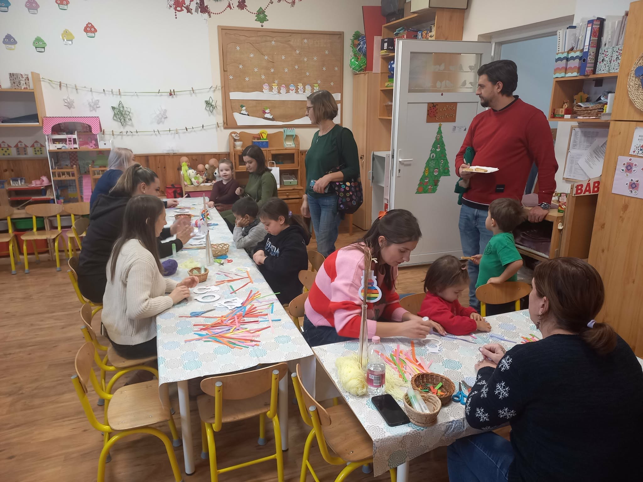 A délelőtt során minden csoportszobában a gyermekek szabadon alkothattak, ünnepi dekorációkat készíthettek.